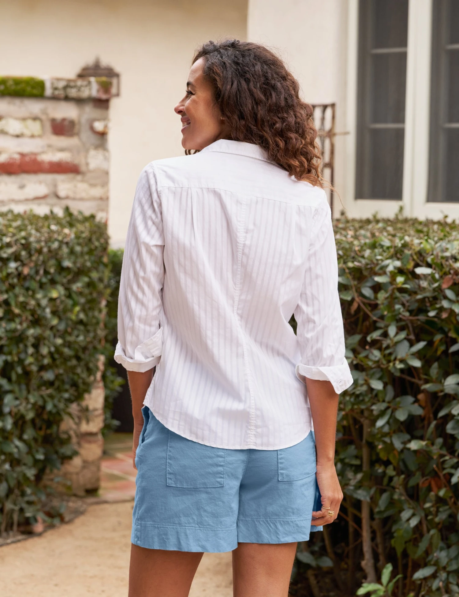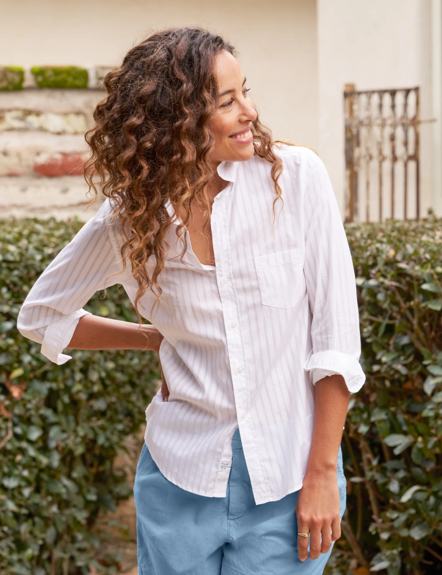 Barry—our first-born button-up—is the closet essential we consider our bread and (Irish) butter. Classic in style and sharply tailored to hug your waist and back, Barry curves in all the right places. Notice our signature single pocket, hip-skimming hemline, and bust-flattering button placement.
