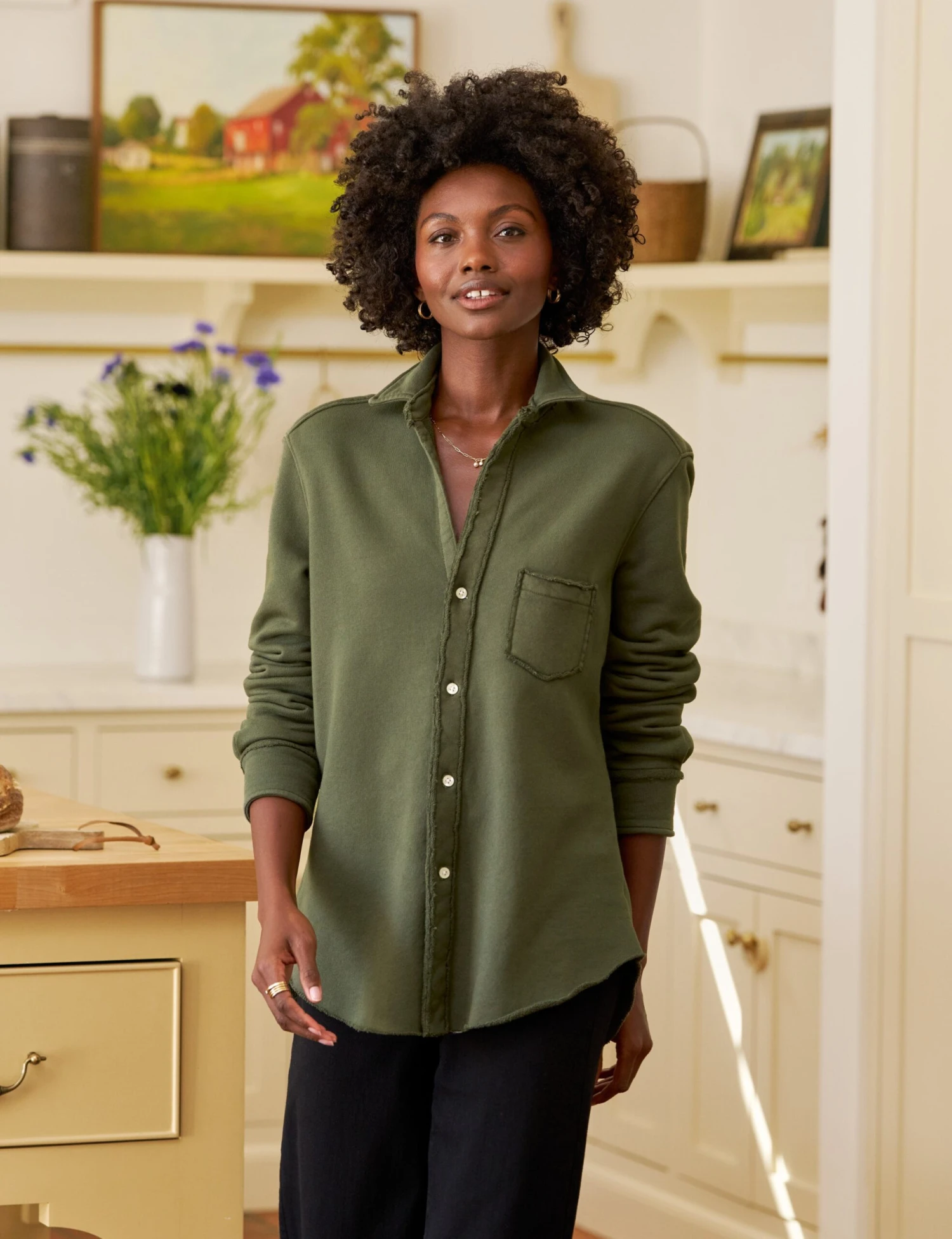 Eileen’s relaxed fit looks phenomenal on every figure. Better yet, she exudes casual California effortlessness. But, the best part? Eileen is generously cut, with our signature bust-flattering button placement. Try tucking, tying, or tossing this easy-to-pull-off best seller over everything in your closet.