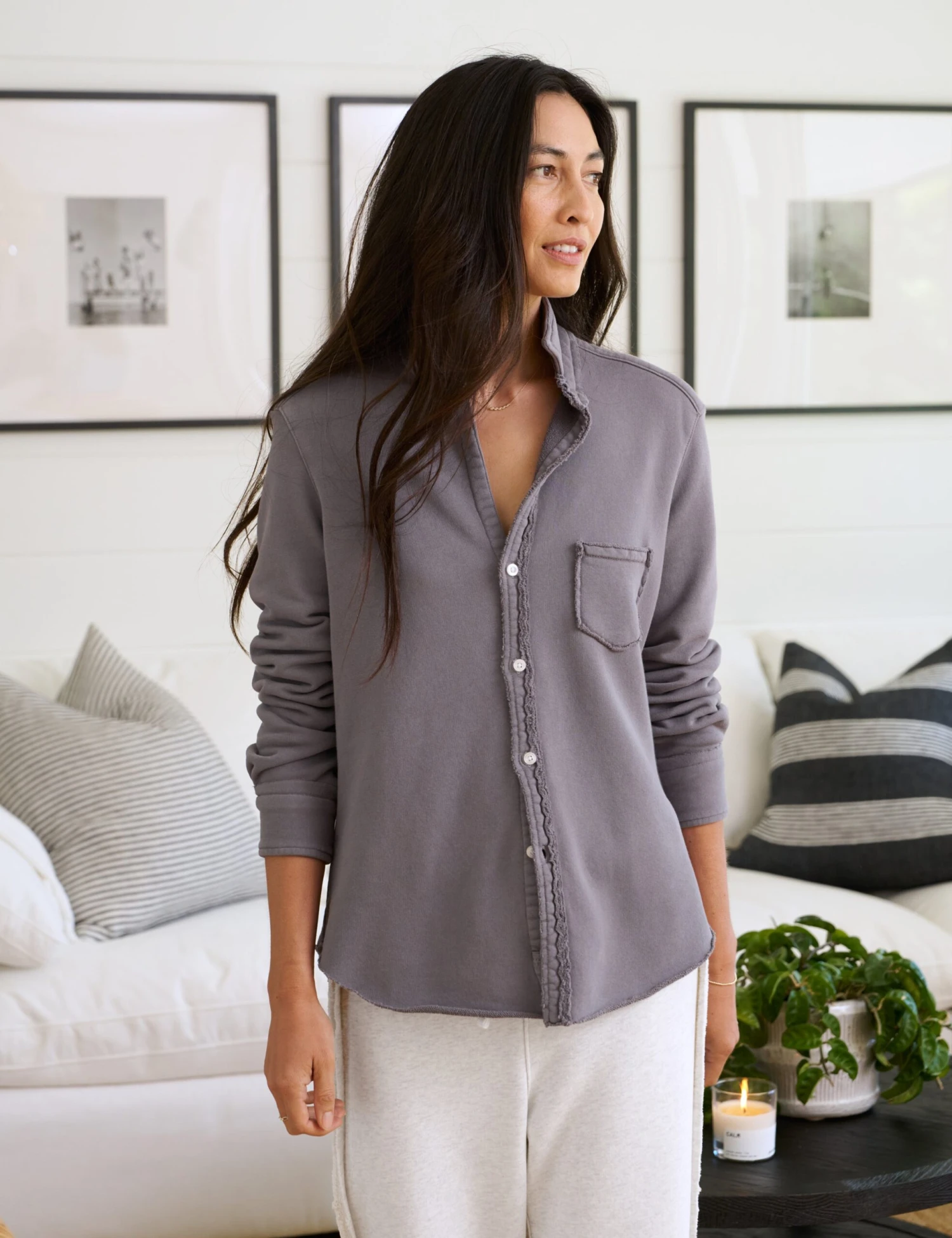 Eileen’s relaxed fit looks phenomenal on every figure. Better yet, she exudes casual California effortlessness. But, the best part? Eileen is generously cut, with our signature bust-flattering button placement. Try tucking, tying, or tossing this easy-to-pull-off best seller over everything in your closet.