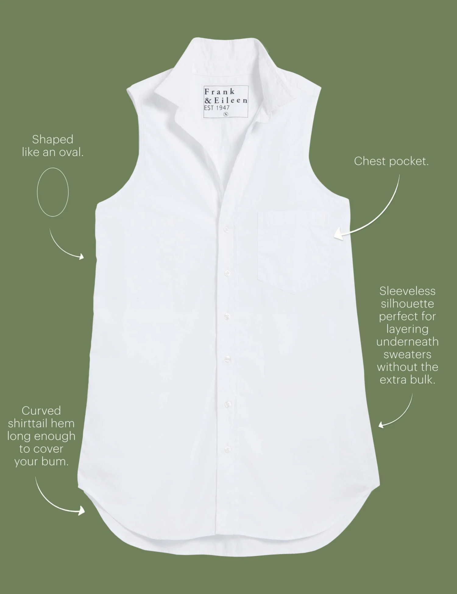 Finley will be your layering hero! This sleeveless style solves the “what do I wear under my sweater?” issue, giving you all the look of a button-up without the bulk! Pop Finley under your Monterey or any favorite Triple Fleece pieces to create a beautifully layered, forever classic look that covers your bum.