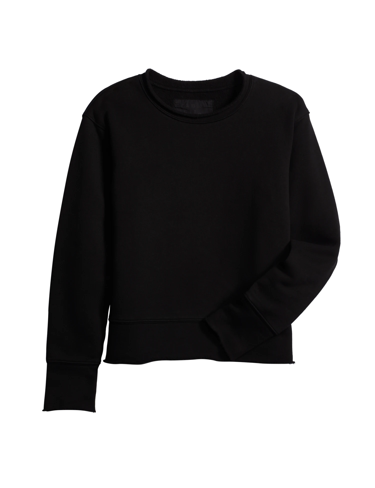 We love your boyfriend’s crew neck, but ours is better. A raw edge hem and cuffs add a touch of California cool, while the cropped, boxy-fit silhouette is classically collegiate. Size up to play around with layers and volume.