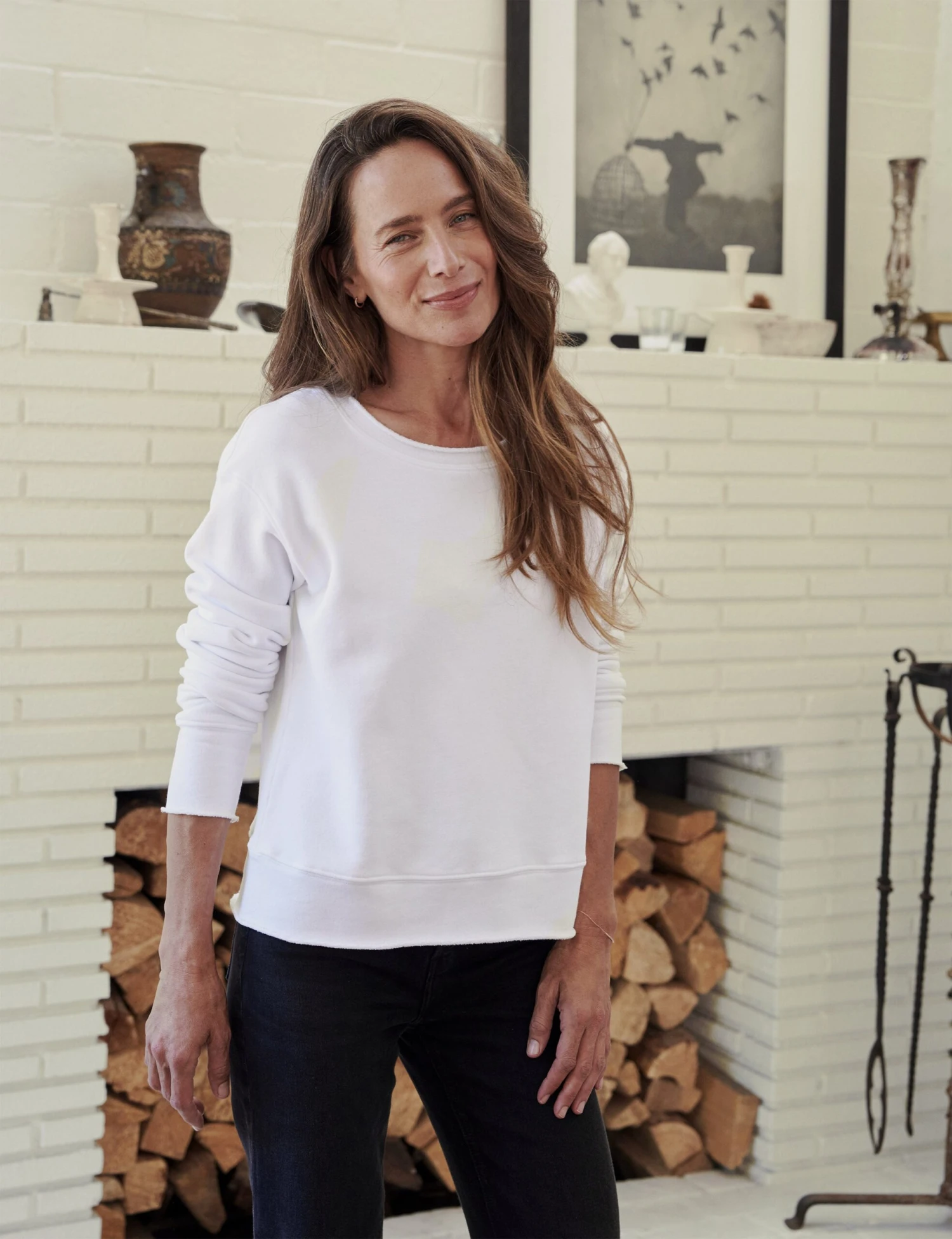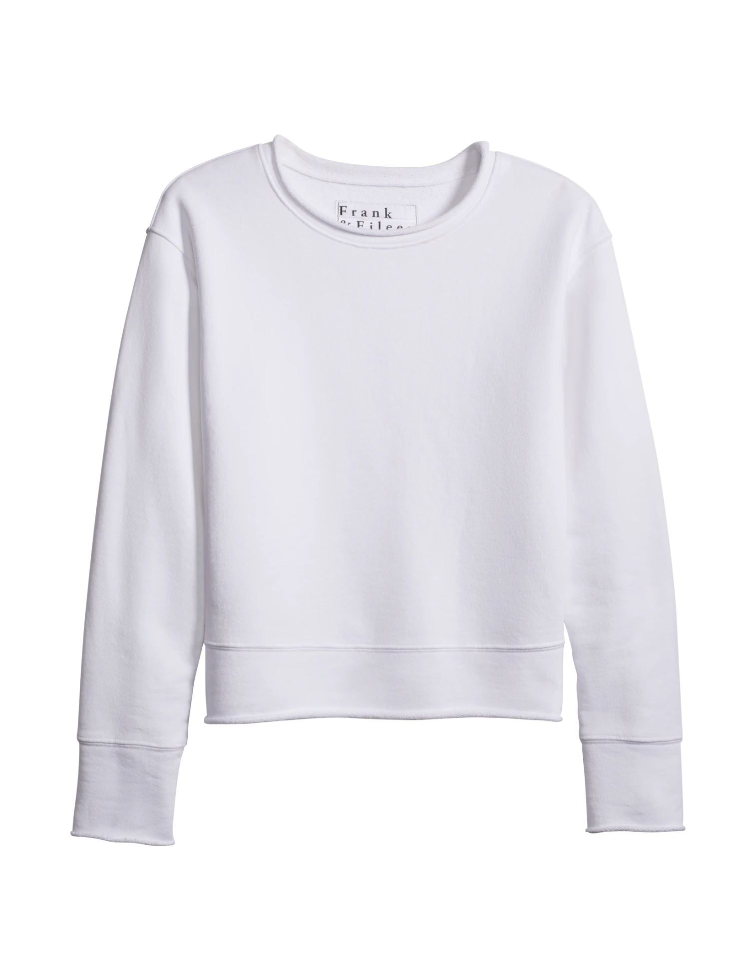 We love your boyfriend’s crew neck, but ours is better. A raw edge hem and cuffs add a touch of California cool, while the cropped, boxy-fit silhouette is classically collegiate. Size up to play around with layers and volume.