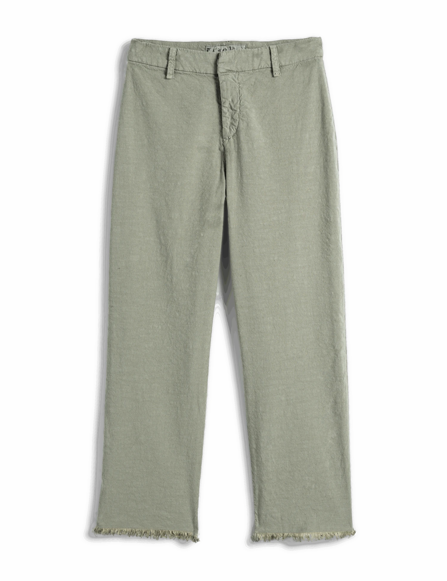 Kinsale is our contemporary take on the classic sailor pant. A comfortable, slightly stretchy, high-rise waistband (with no front pockets) creates a smooth silhouette while Kinsale’s cropped ankle and raw edge hem add a contemporary edge.