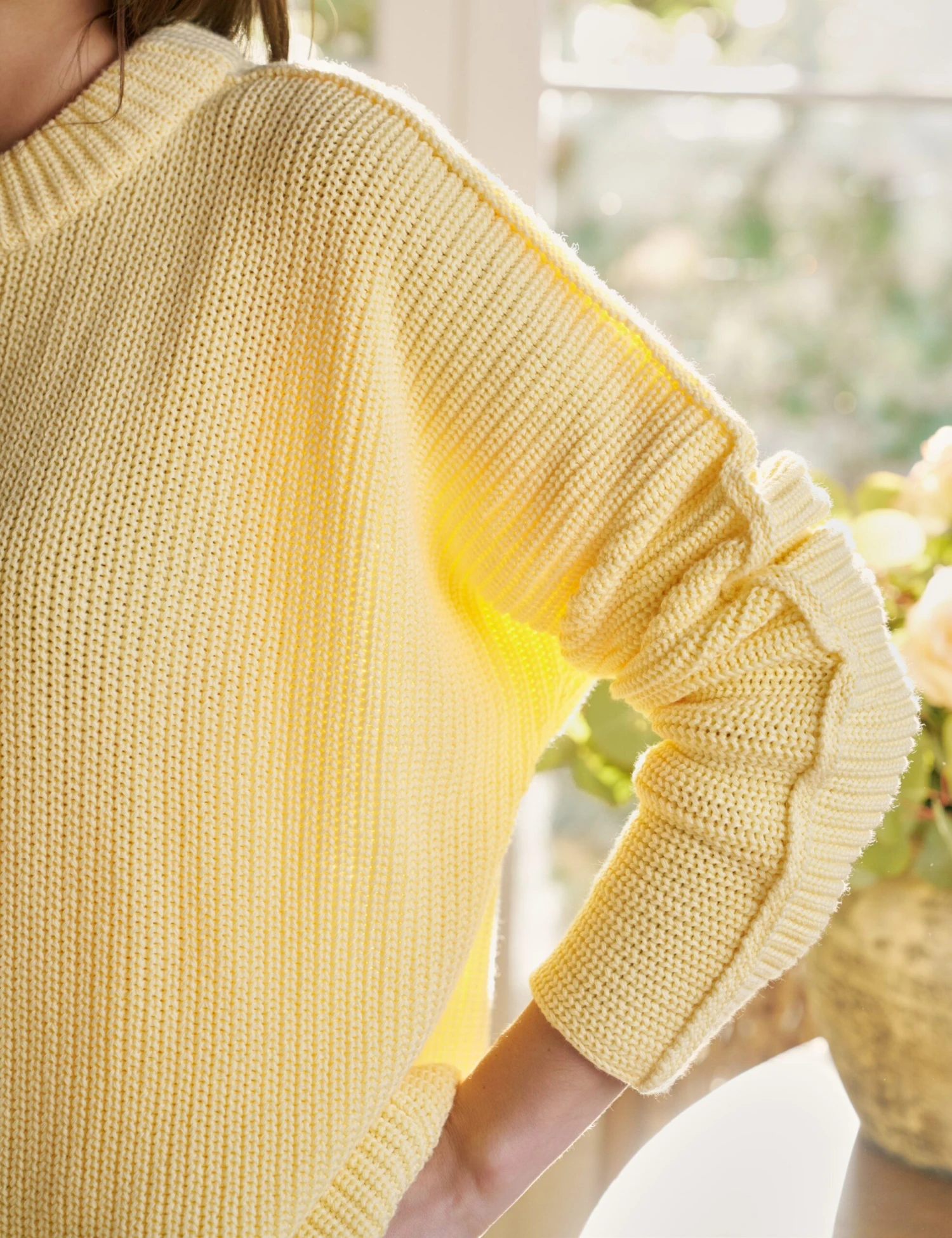 Designed with a relaxed fit to easily (and elegantly!) pull on over your everyday staples, the Montecito Sweater is luxuriously soft in Pure Italian Cotton. A flattering continuous seam sleeve and an exaggerated crew neck add a modern touch to this beautifully made sweater, destined to become a new forever classic for your closet.