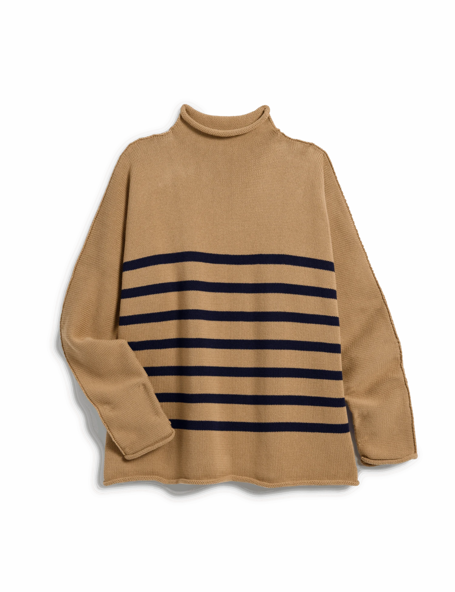 SKU: ZNJHB 7768668635210 Categories: Sweaters, Tops Tags: Category_sweaters, Color_brown, Fabric_Pure Italian Cotton: Stripes, Fc:Category:Knitted Sweaters, Silhouette_monterey, Subtitle_Rolled Funnel Neck Sweater, Title_Monterey, YCRF_TopsDressesAlpha, YGroup_monterey-pure-italian-cotton