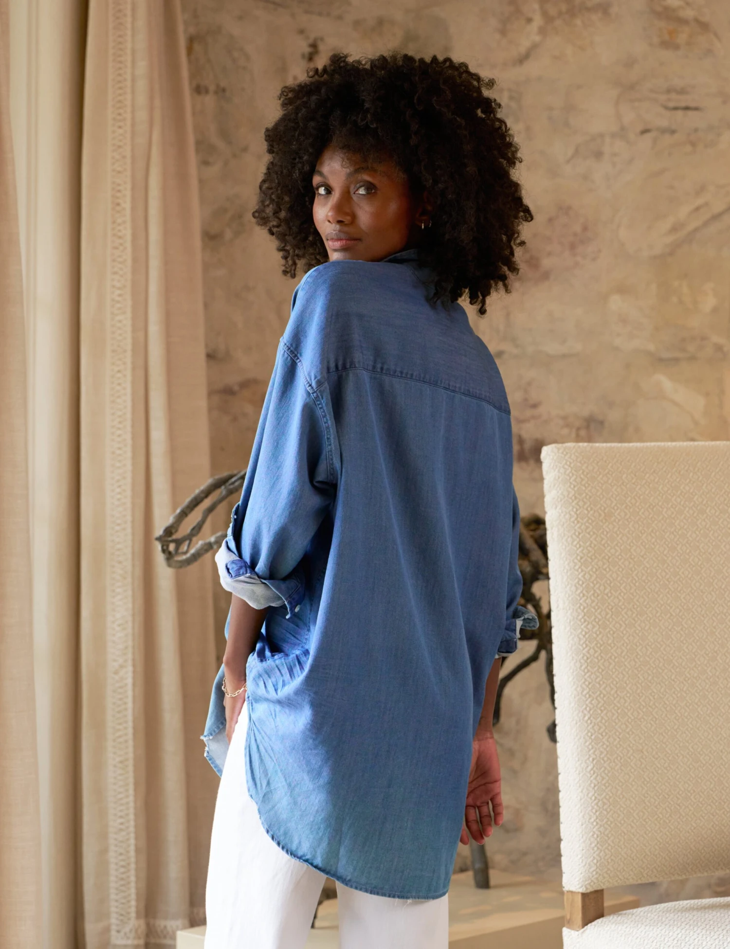 Inspired by Frank and Eileen’s beloved daughter, Shirley is our feminine take on an oversized button-up. When you’re craving extra-relaxed comfort, Shirley is your everyday go-to you can rely on, from morning coffee to work and on to dinner.